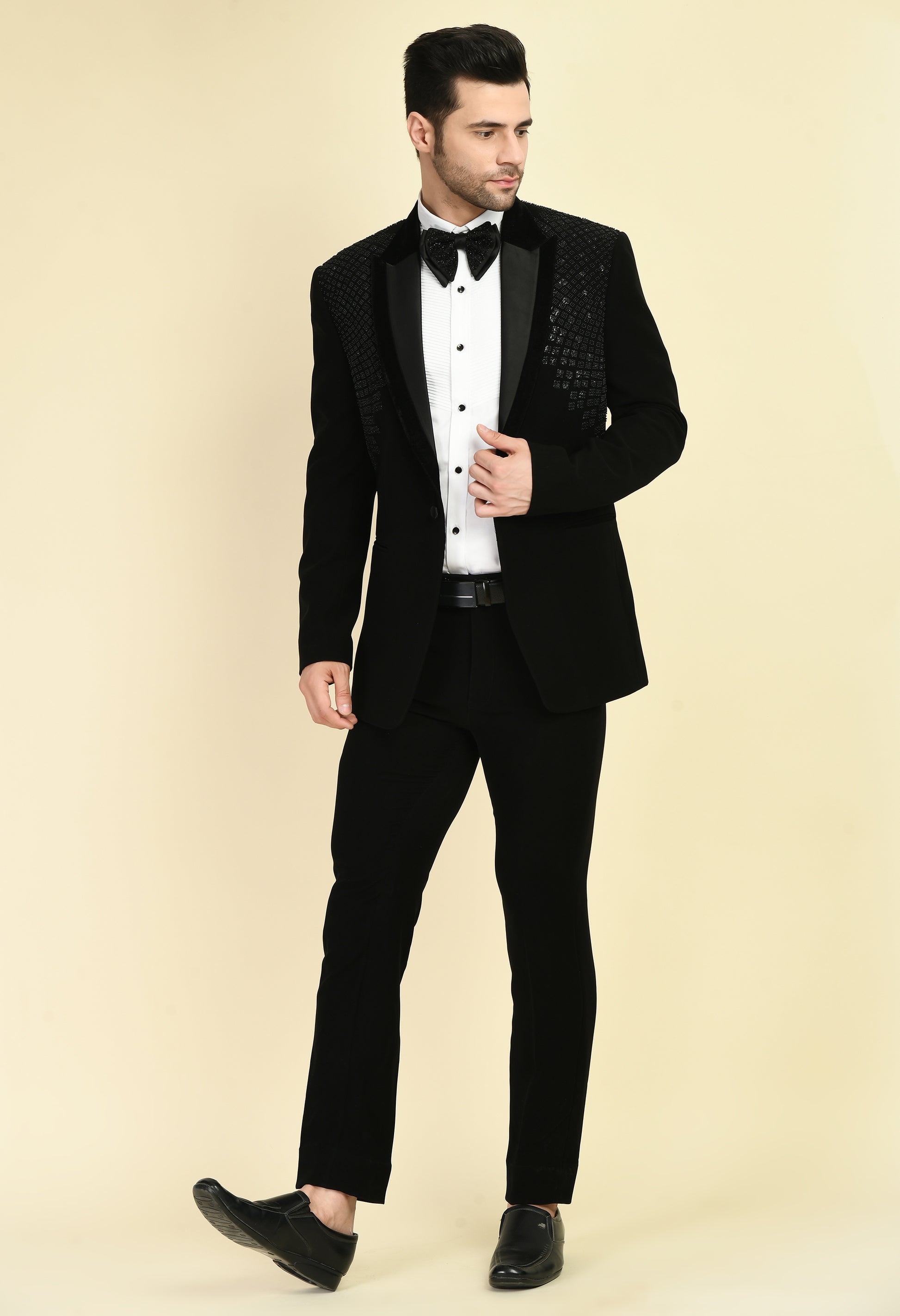 Men’s Tuxedo – Japanese Lycra in Black with Geometric Beads, Stone and Sequins Embroidery | One Man Show