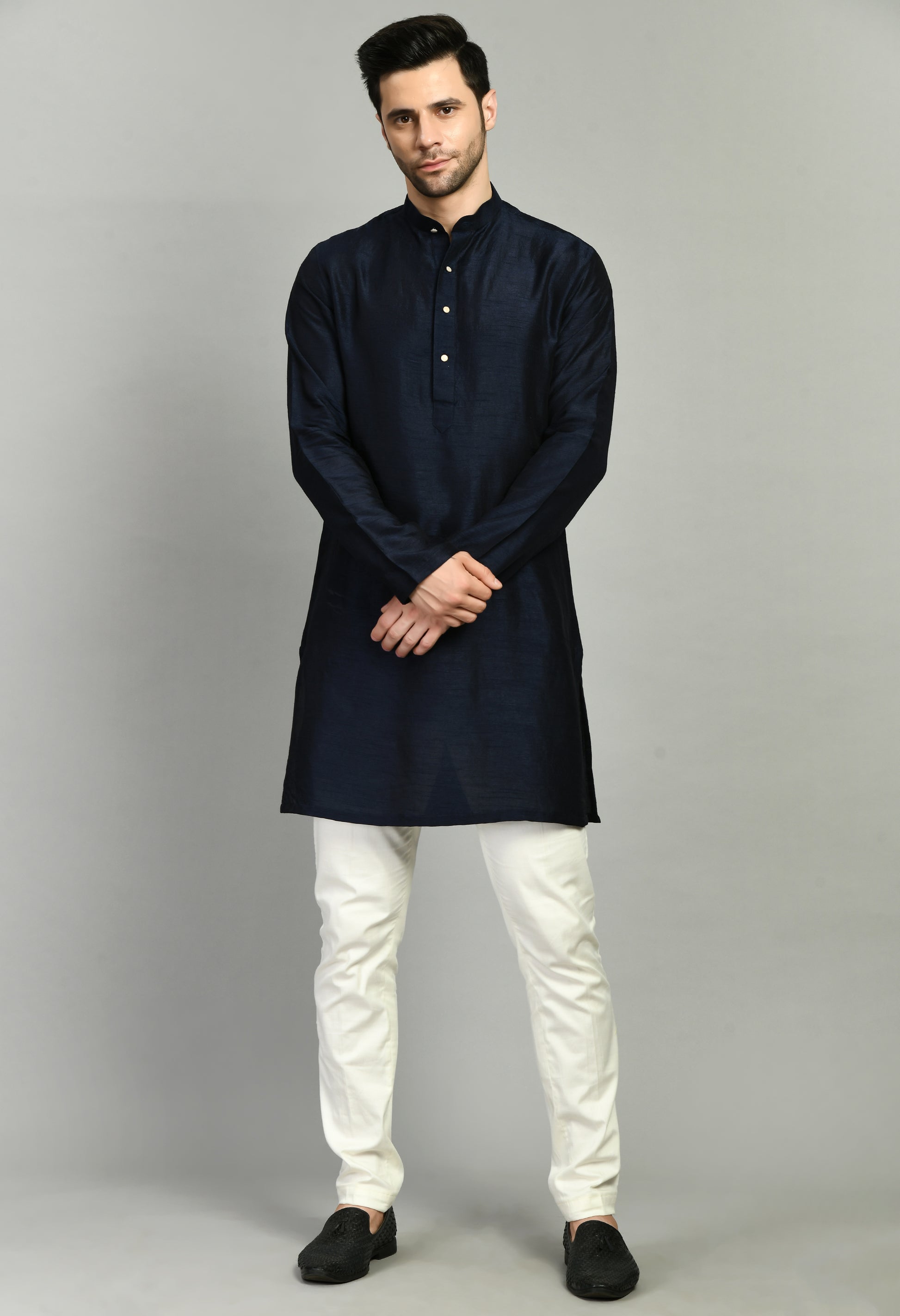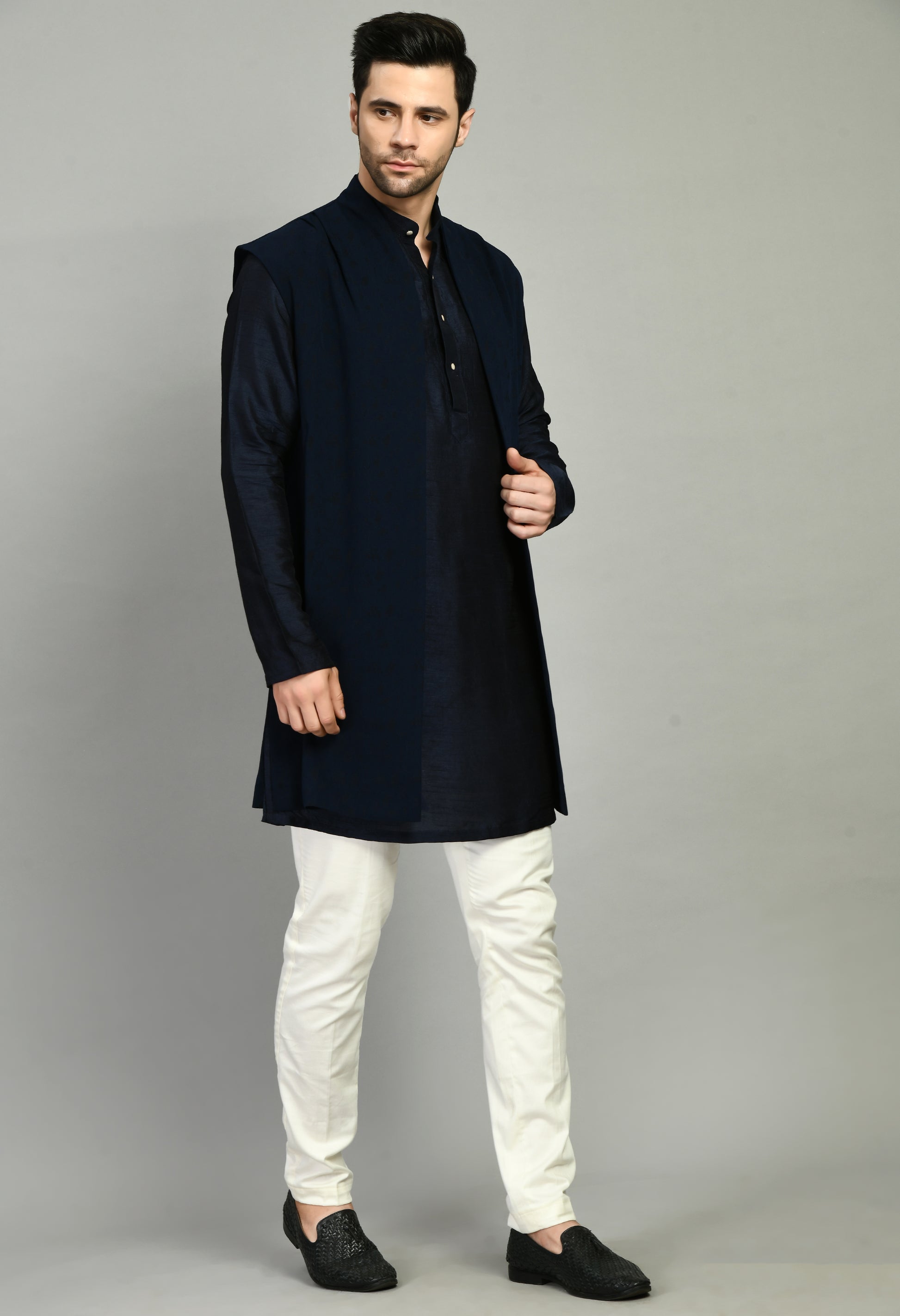 Men’s Nehru Jacket – Silk Modal in Navy Blue with Shurg Style Jacket | One Man Show
