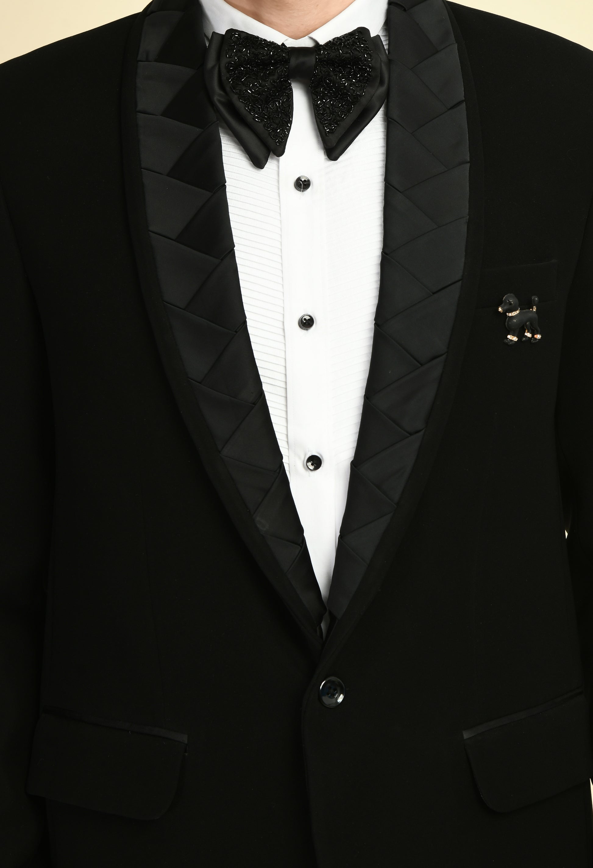 Men’s Tuxedo – Japanese Lycra in Black with Woven Satin Strips Design | One Man Show