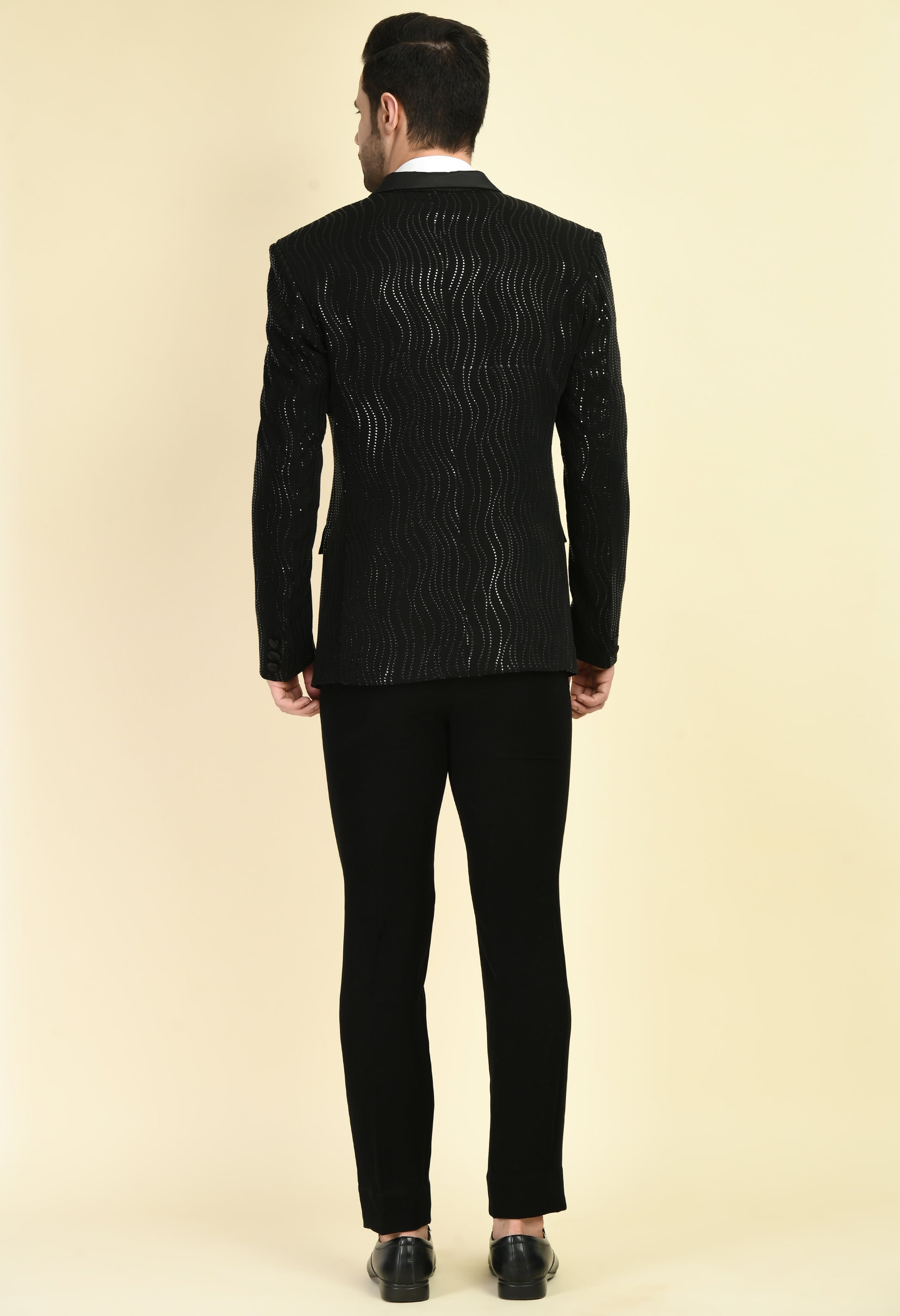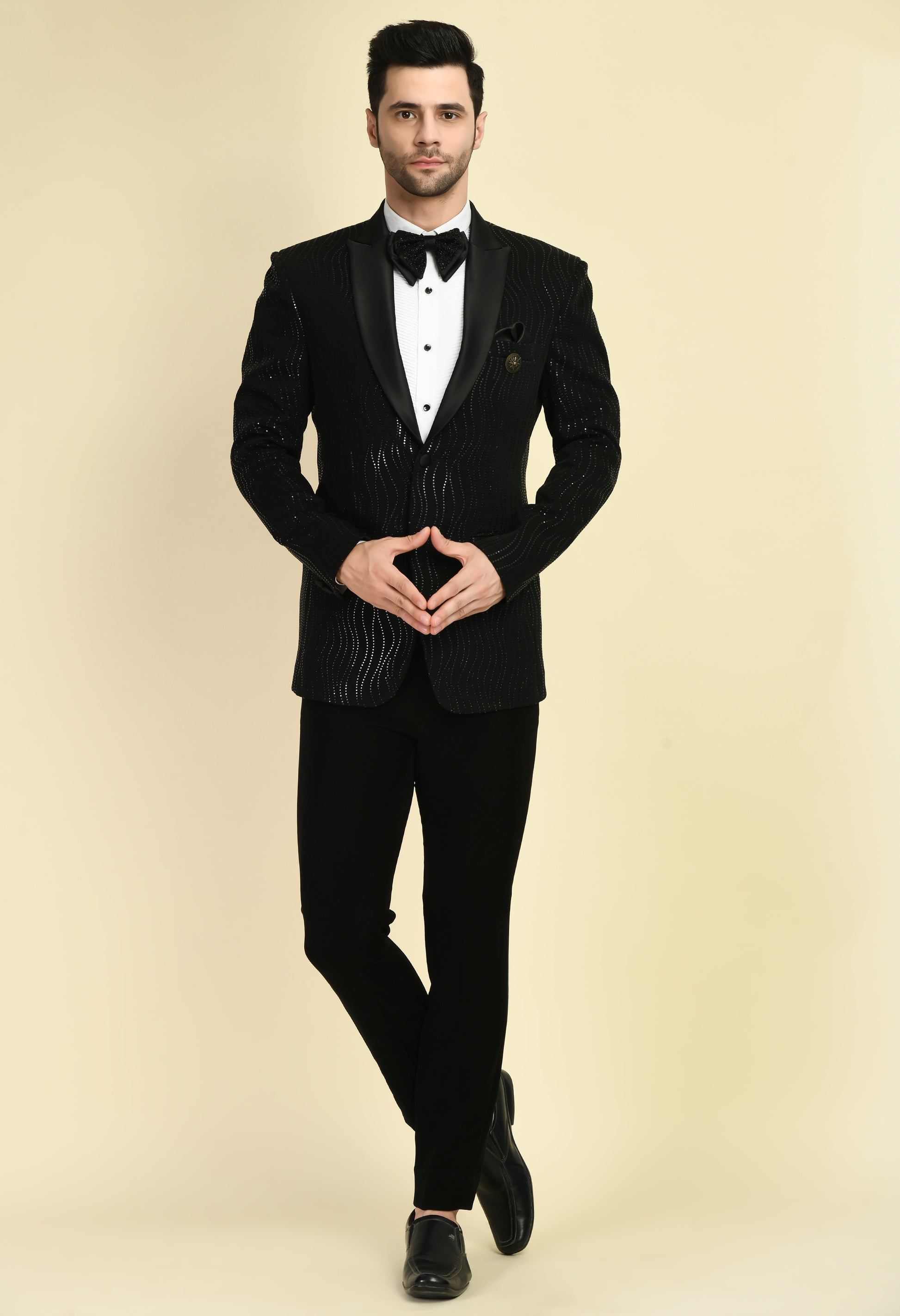 Men’s Tuxedo – Japanese Lycra in Black with Shimmer Print | One Man Show
