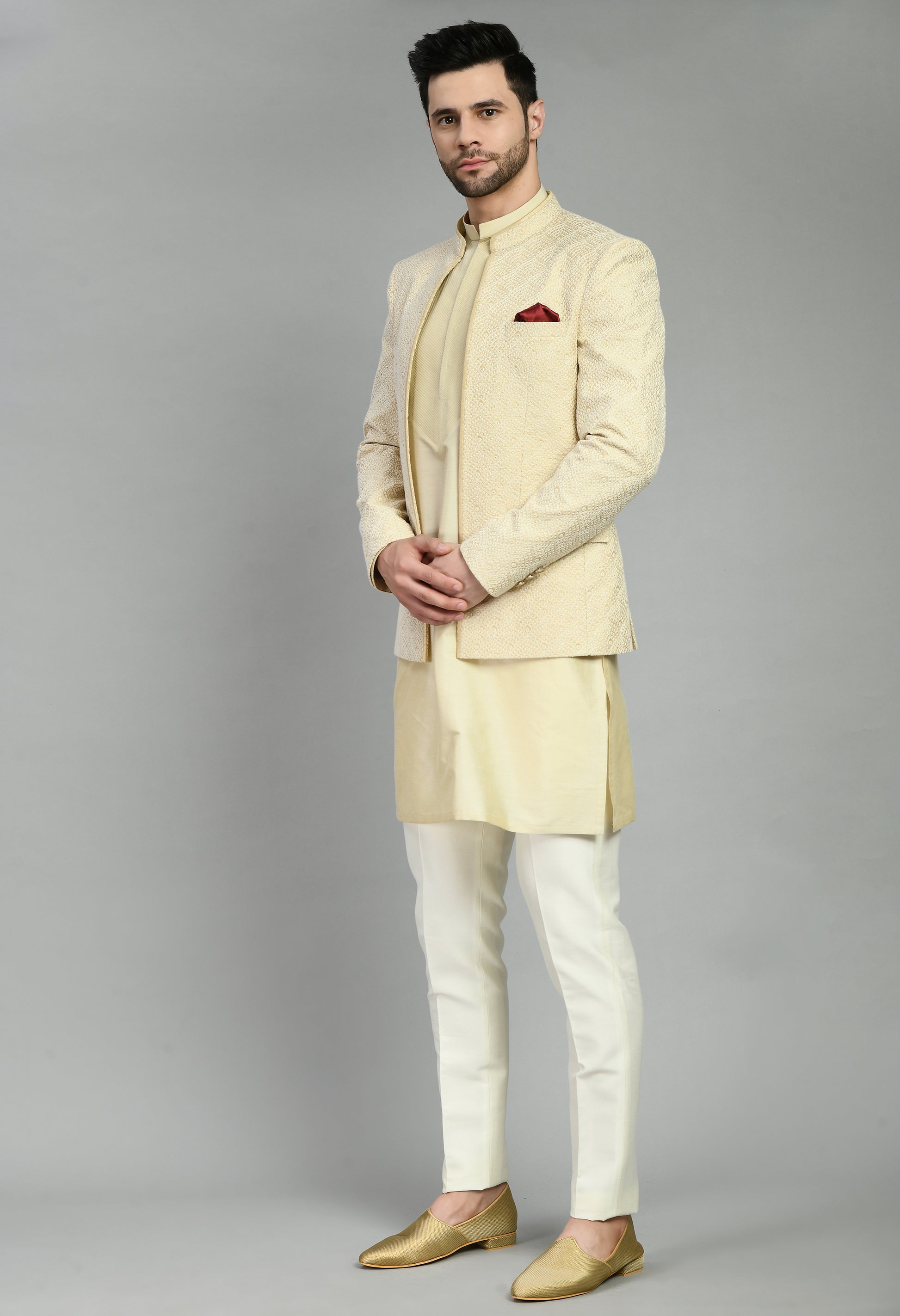 Men’s Indo-Western – Silk Kurta in Cream with Silk Thread Embroidery | One Man Show