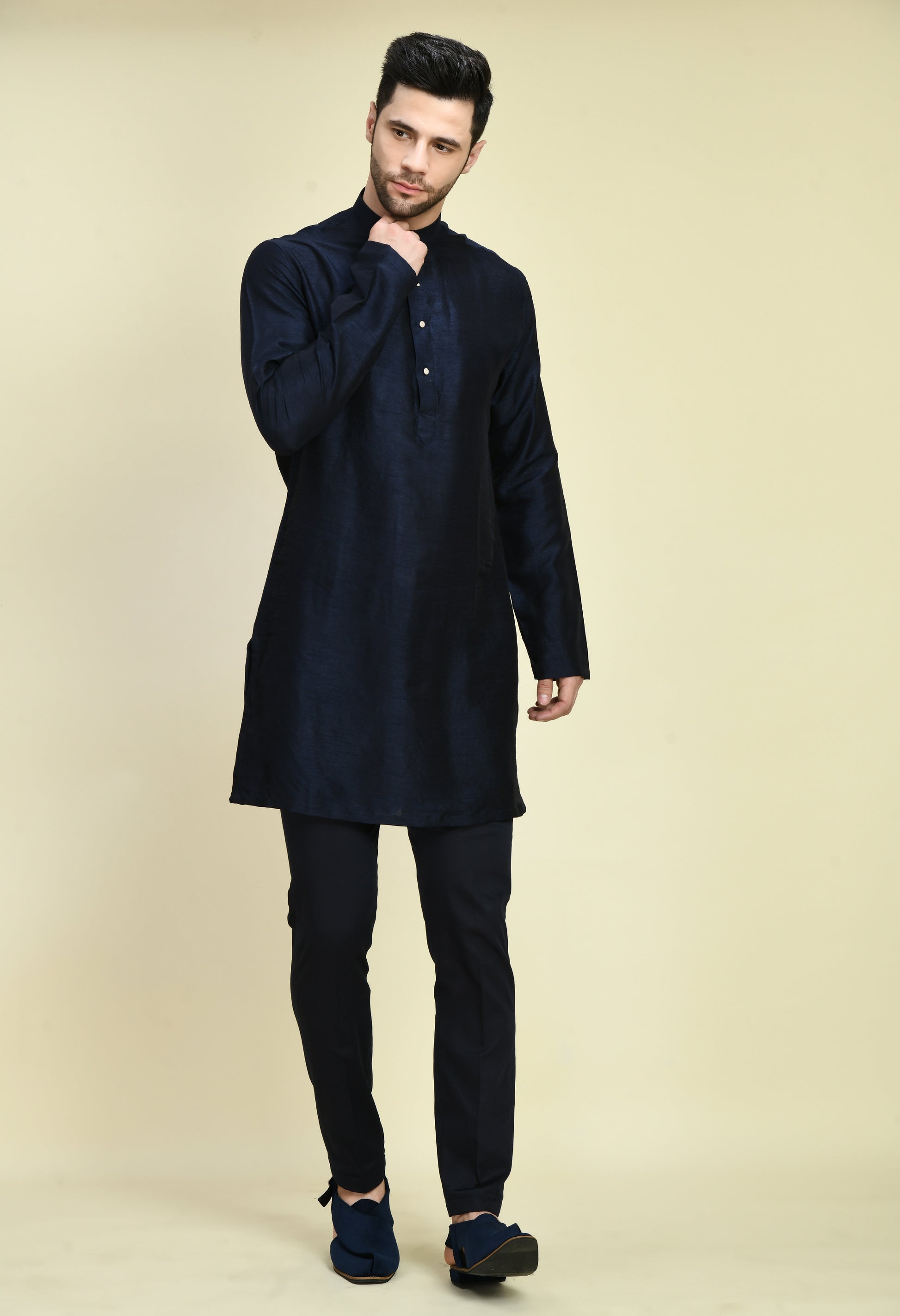 Crafted from sumptuous silk, this Nehru jacket offers a refined drape and a modern silhouette, perfect for celebrations. The intricate silk thread embroidery adds a touch of elegance, while the accompanying kurta and cotton lycra pants ensure comfort and style. This ensemble is designed to make a statement at any occasion.