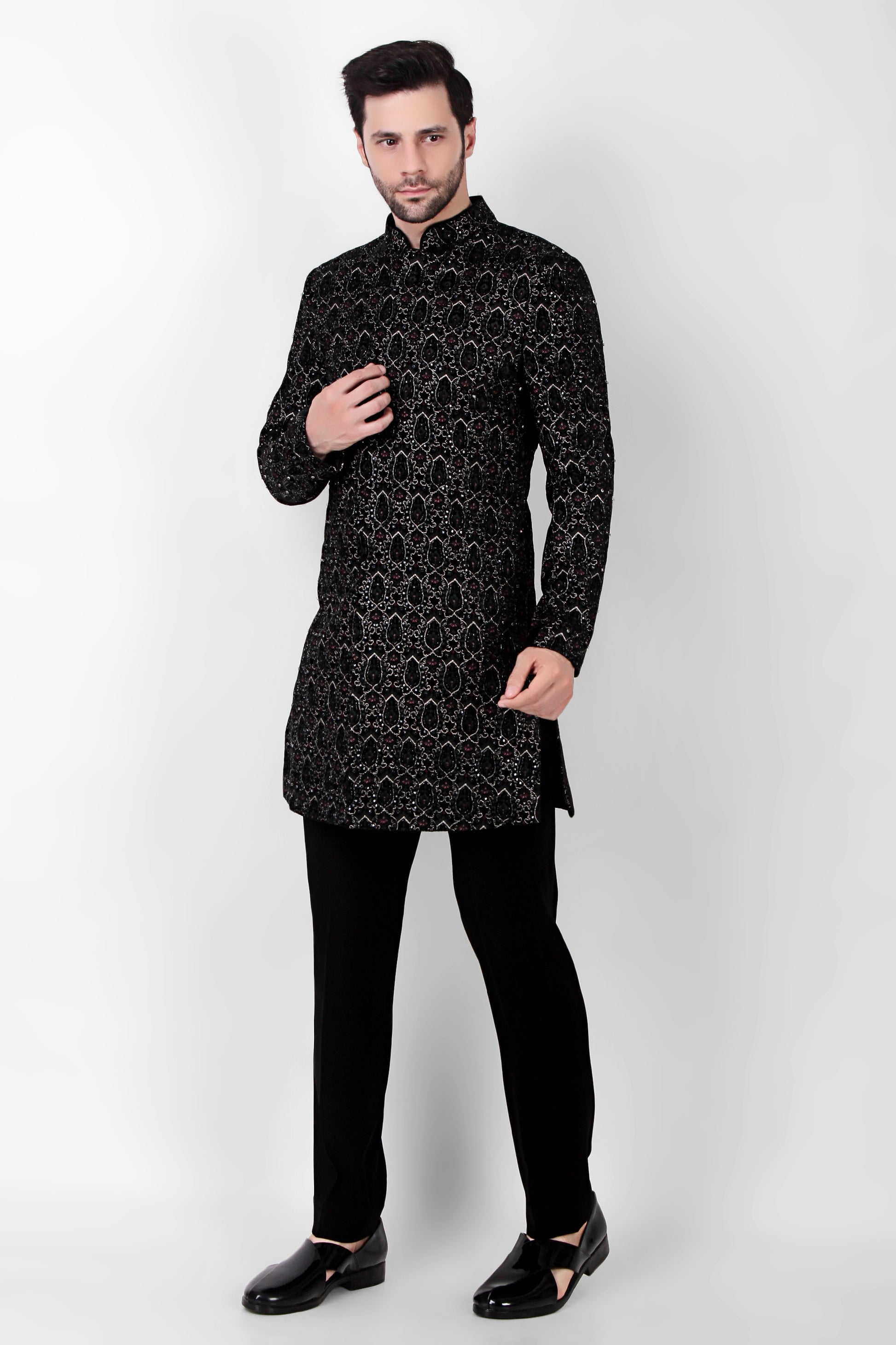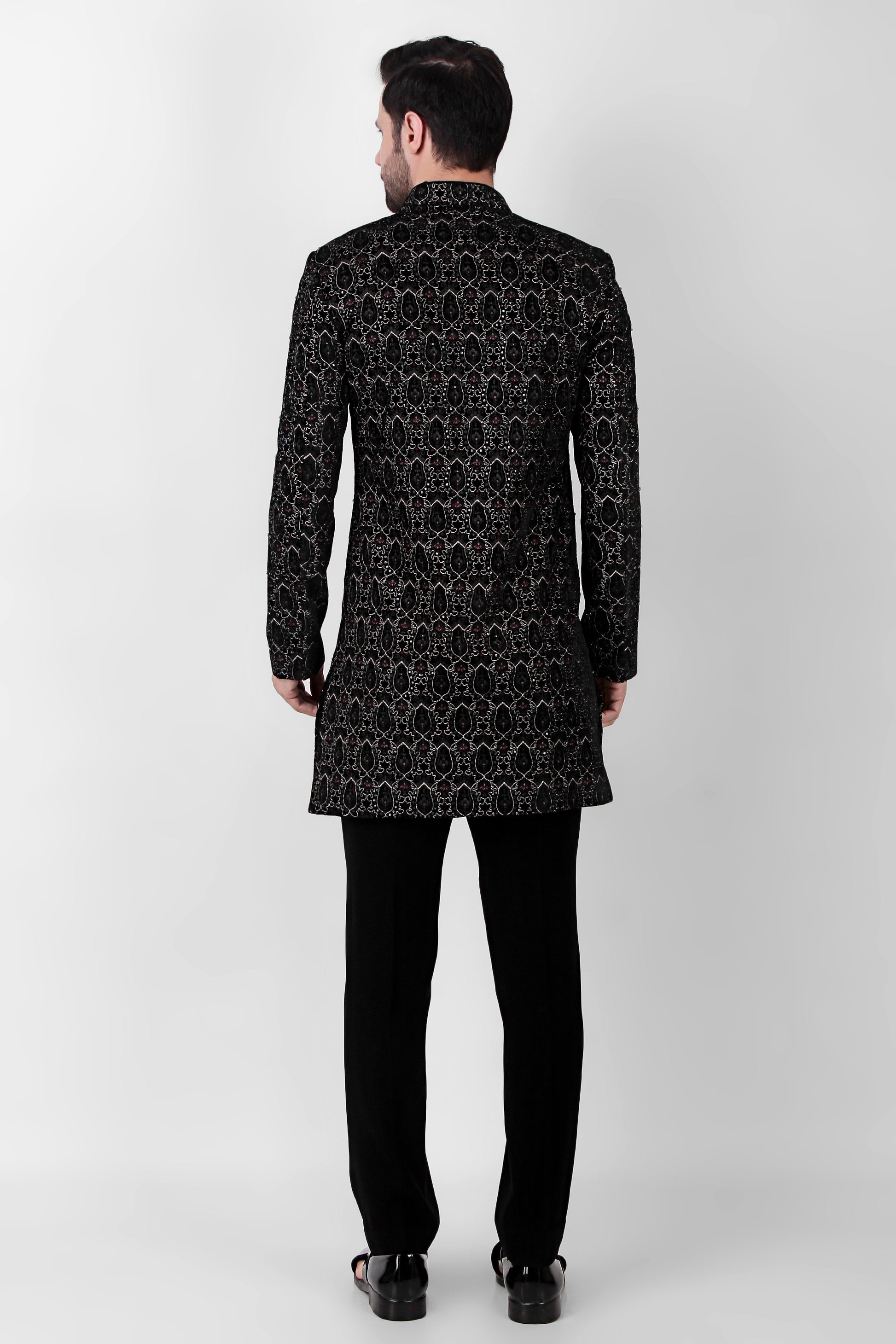 Men’s Indo-Western – Velvet in Multi Color with Geometric Silk Thread Embroidery | One Man Show