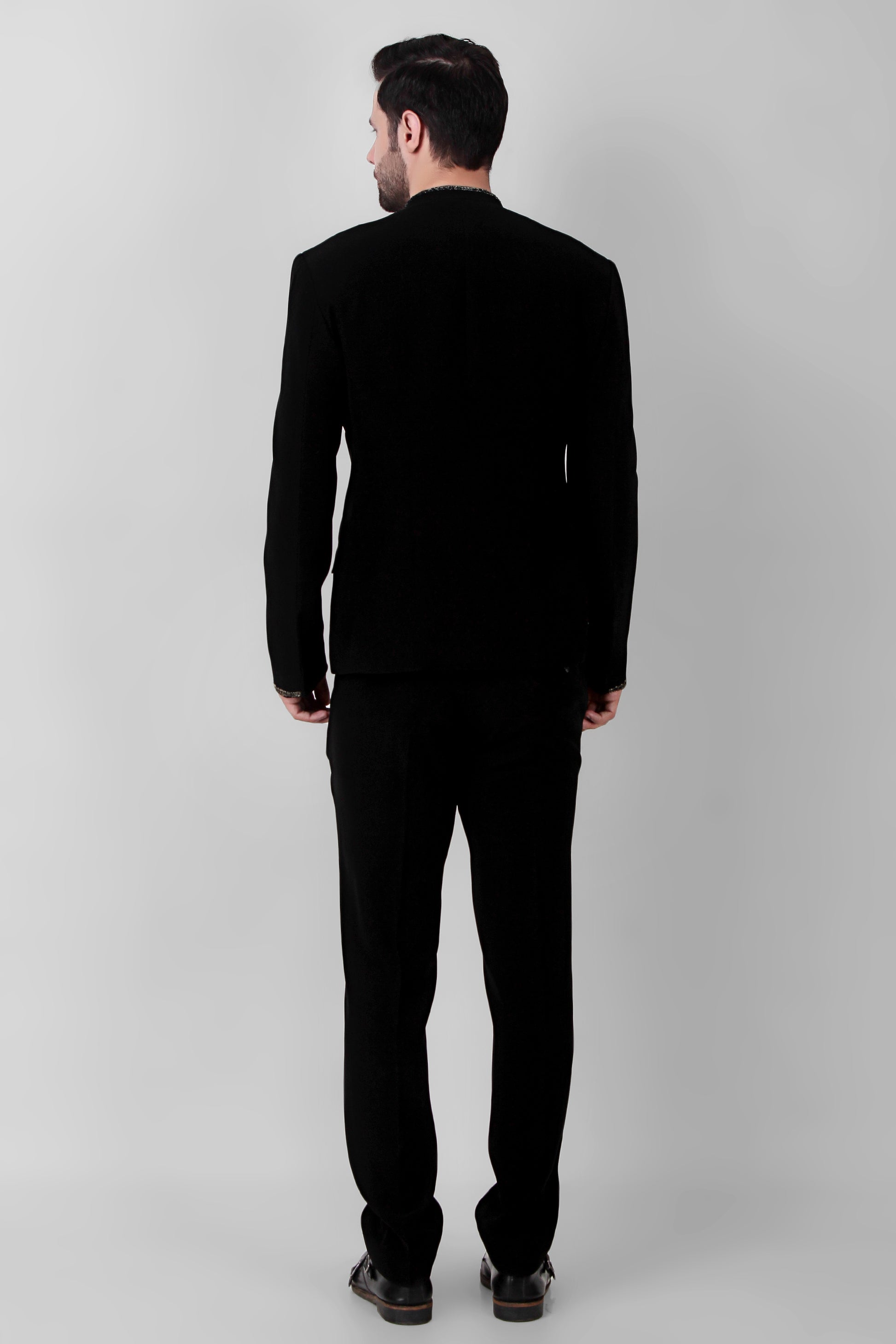 Men’s Bandhgala – Japanese Lycra in Black with Minimal Zari Embroidery | One Man Show