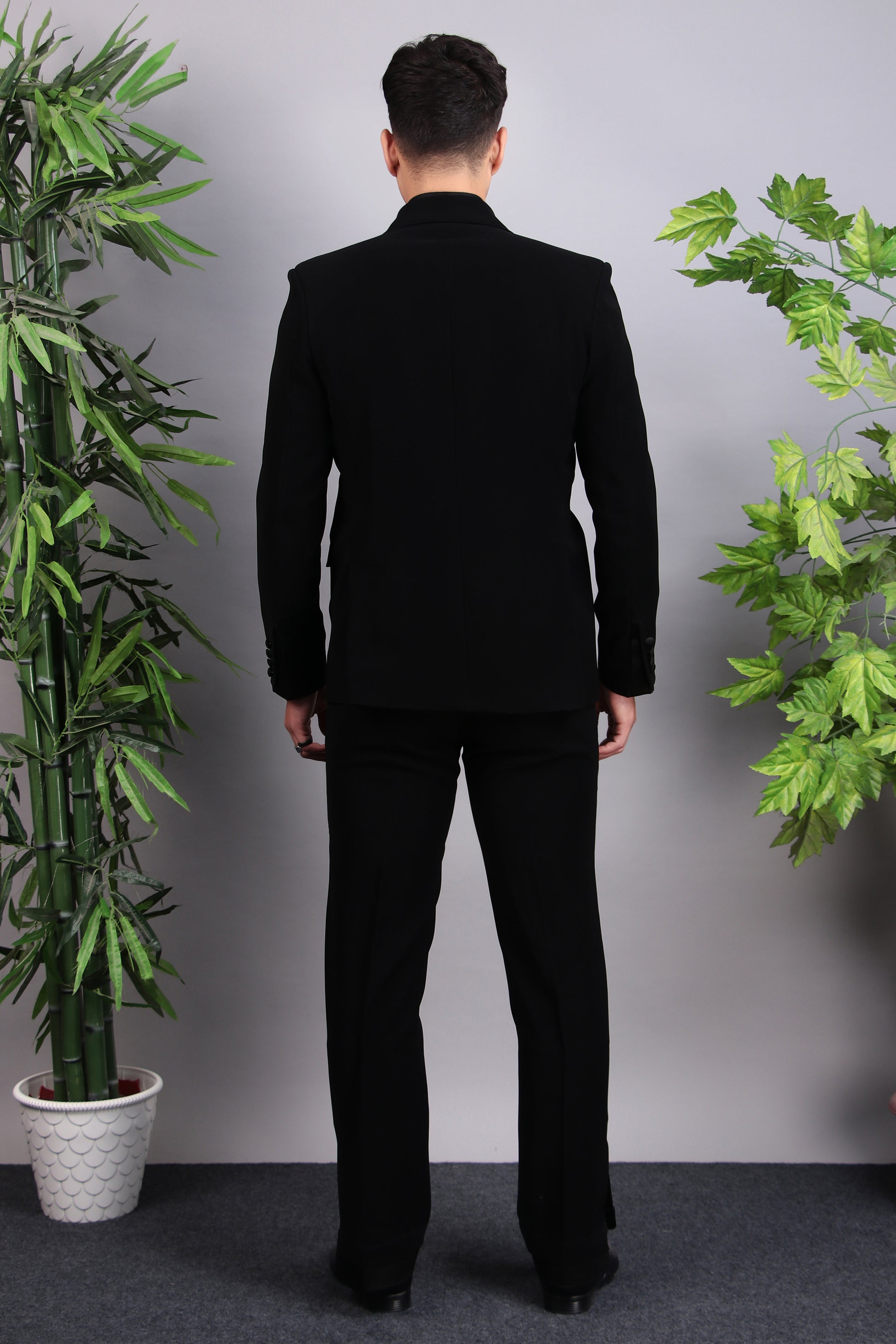 Men’s Tuxedo – Japanese Lycra in Black with Extended Front and Lapel Detailing | One Man Show