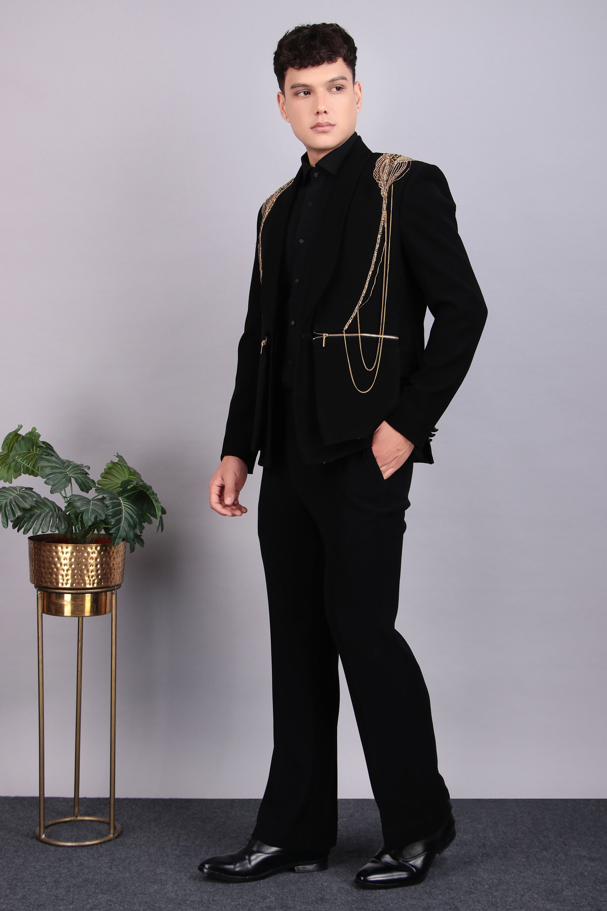 Men’s Tuxedo – Japanese Lycra in Black with Golden Embroidery | One Man Show