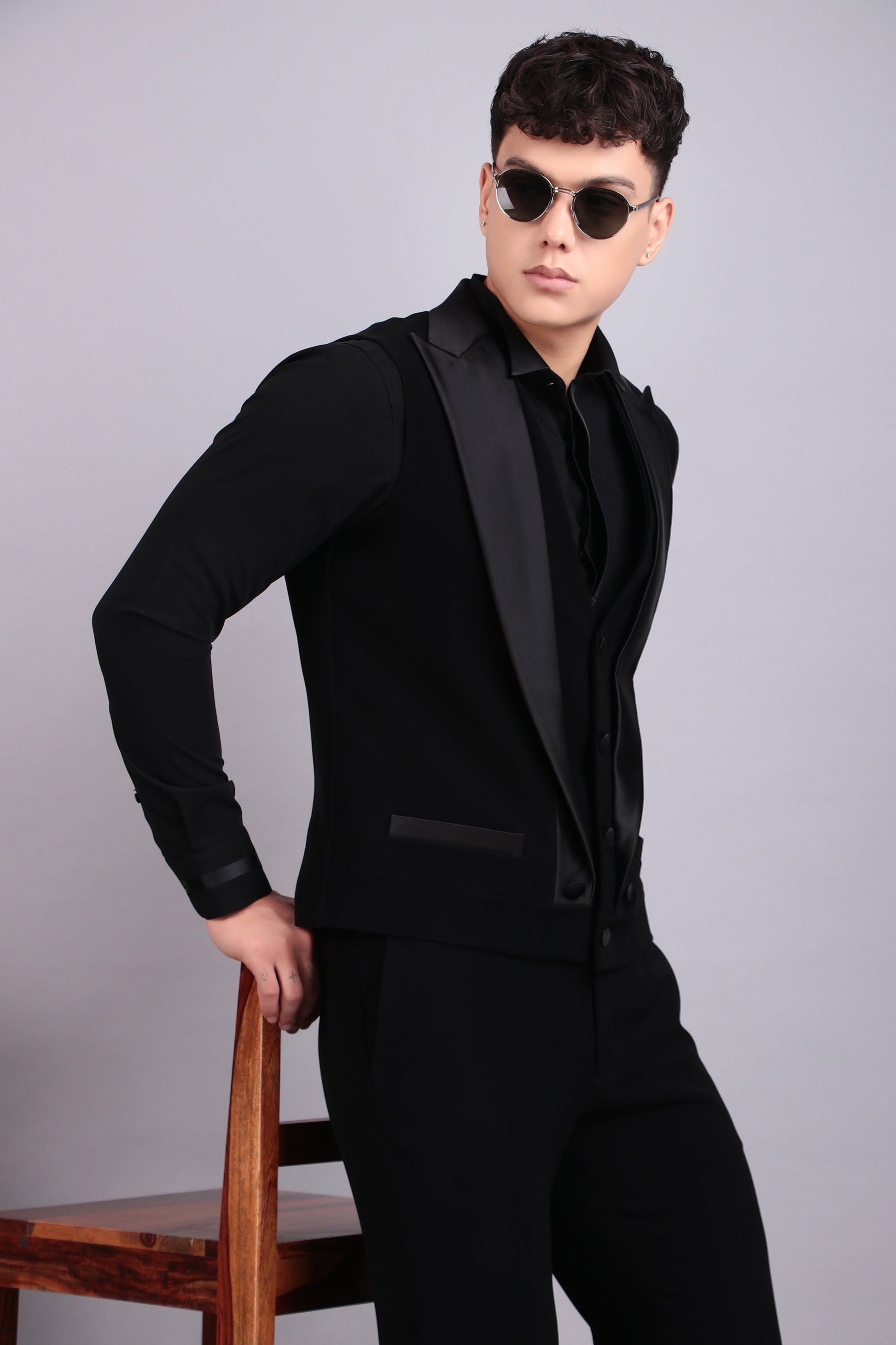 Men’s Tuxedo – Japanese Lycra in Black with Multi Layered Vest Style Jacket | One Man Show