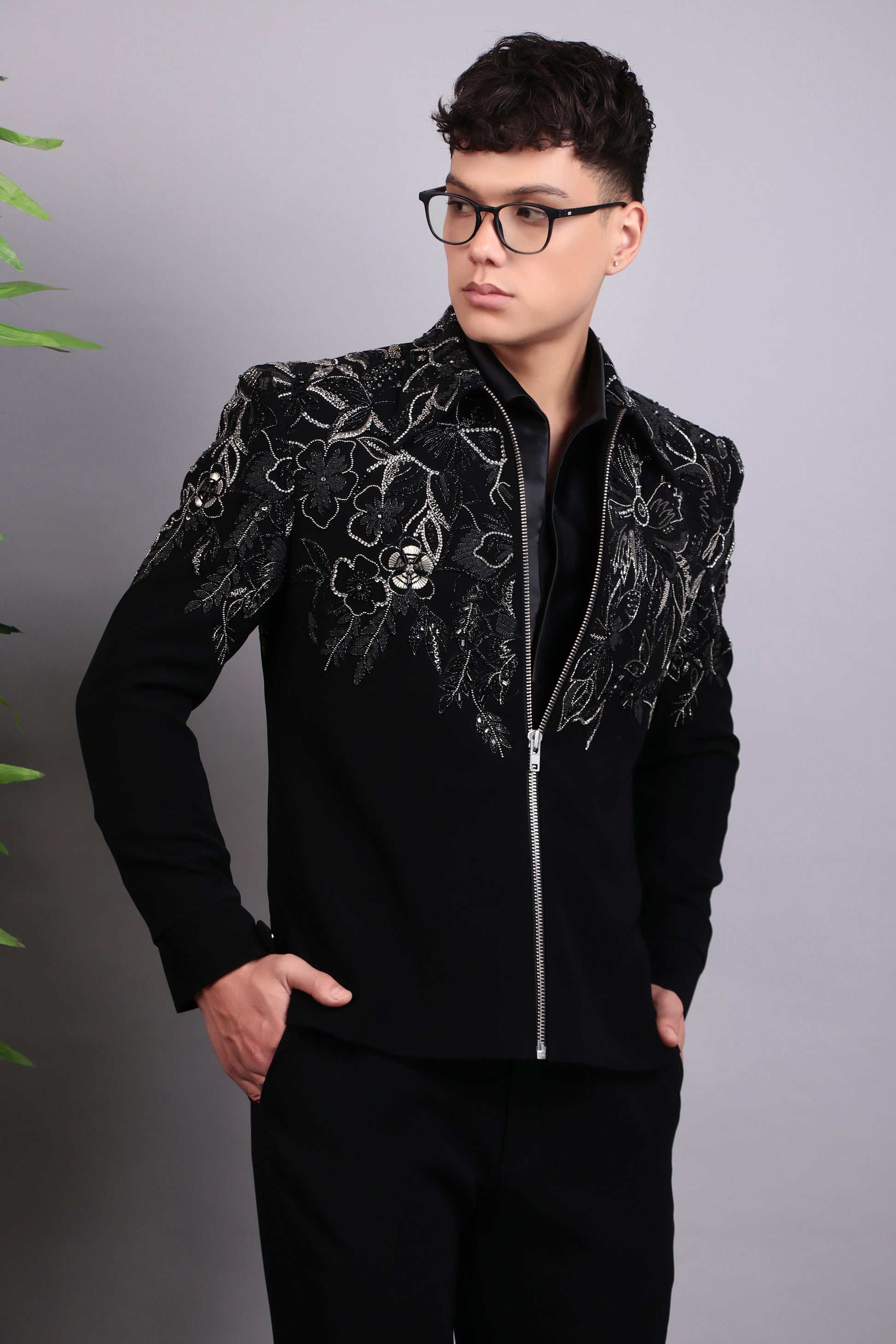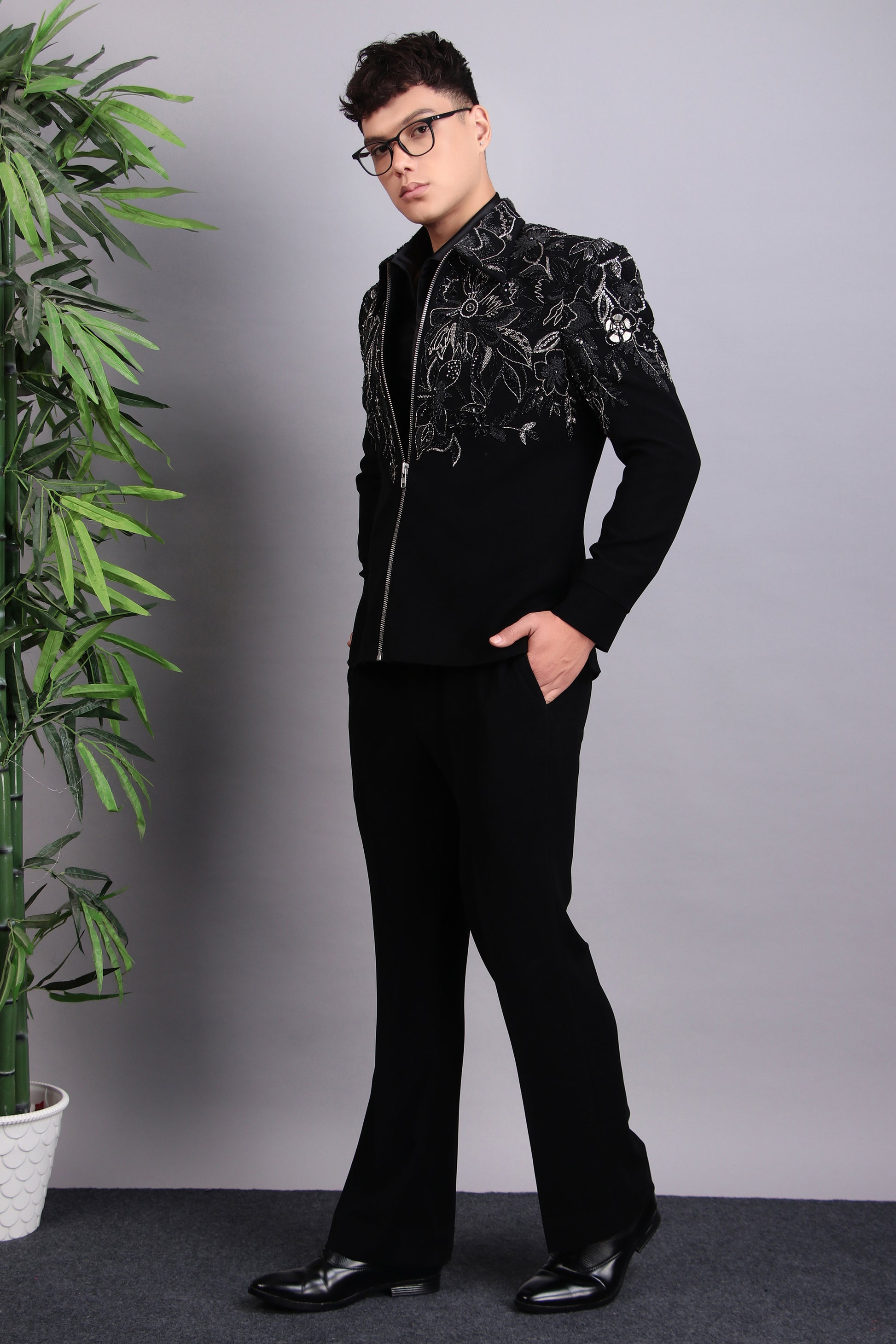 Men’s Tuxedo – Japanese Lycra in Black with Hand Embroidery | One Man Show